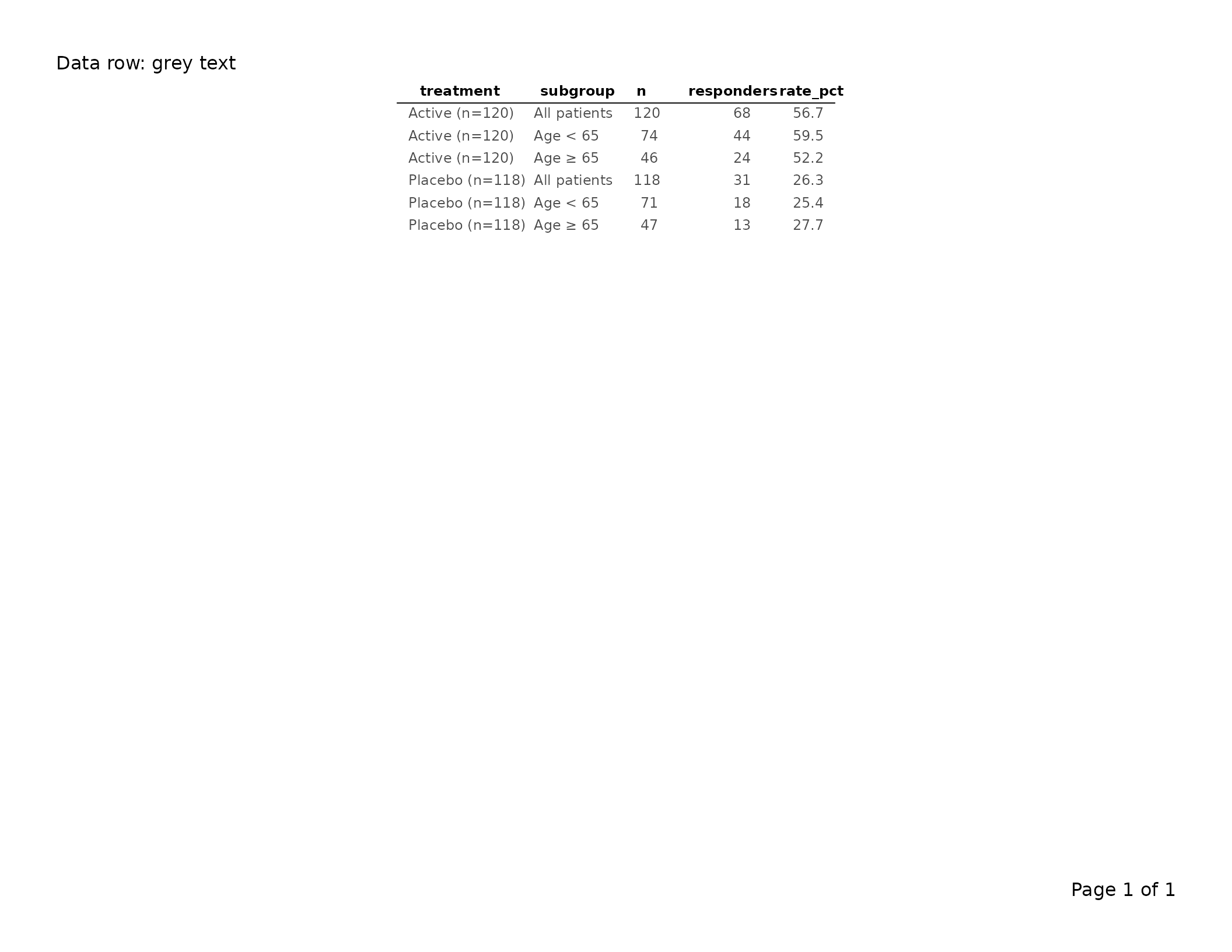 export_tfl(tbl, preview = TRUE, header_left = "Data row: grey text")