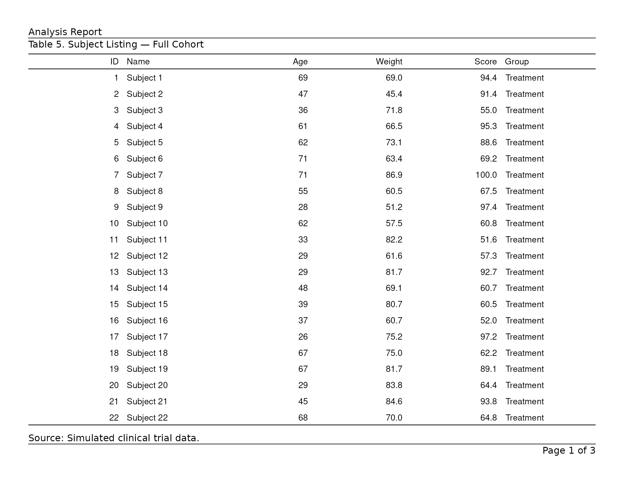 set_caption("Table 5. Subject Listing — Full Cohort") |>
